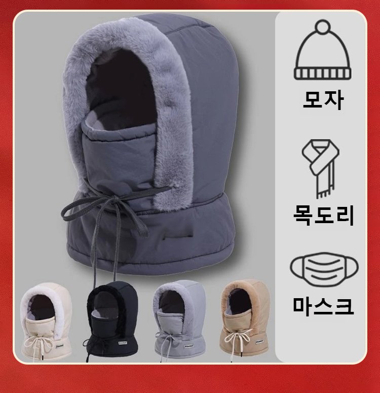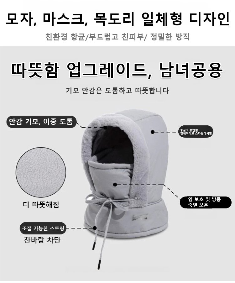 기모 도톰 보온 후드 넥워머 모자